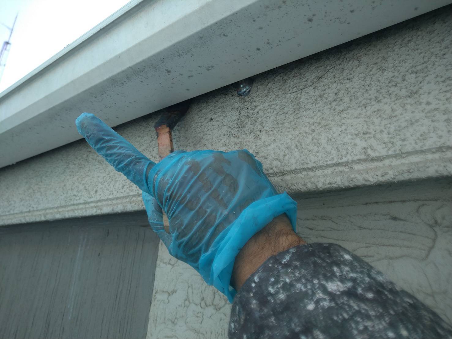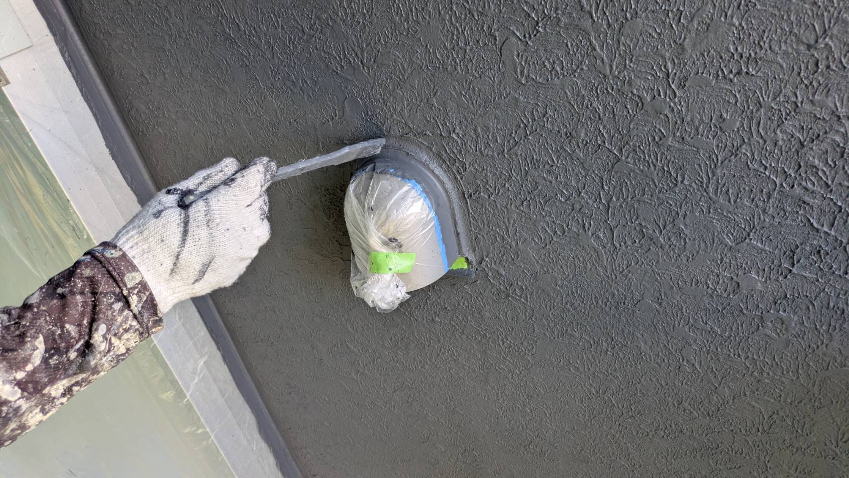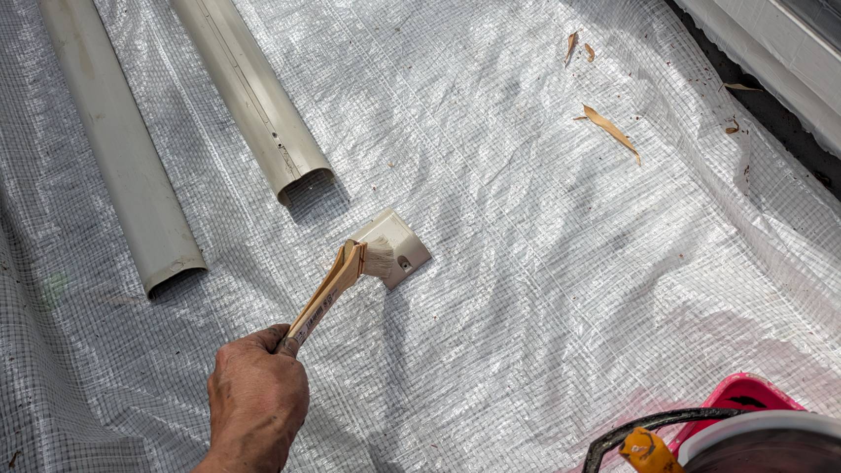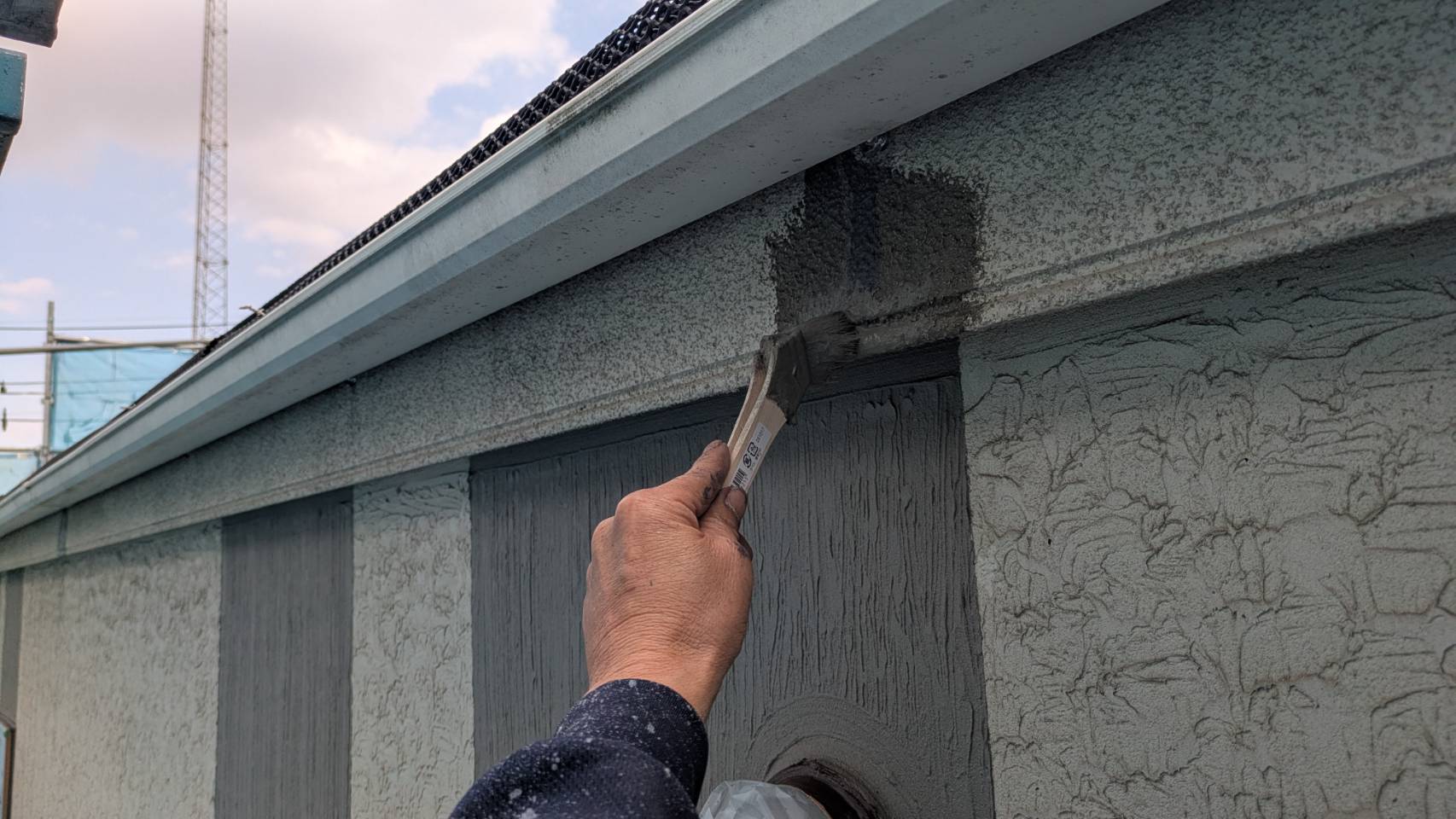 軒まわりも下塗り 外壁日当たりの良い面は、塗料を良く吸い込みます。(劣化している部分は吸い込みが激しいので、その分多めに塗ります)
