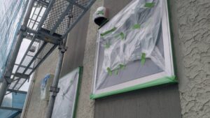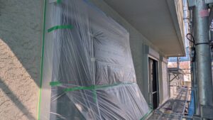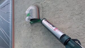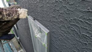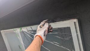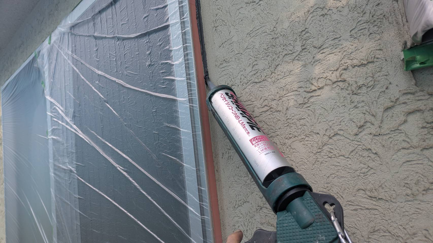 窓サッシまわりです。 この作業が外装工事で一番大切です。 塗装だけでも防水性は高まりますが、完全ではありません。 この下地処理が施工ポイントの一つになります。