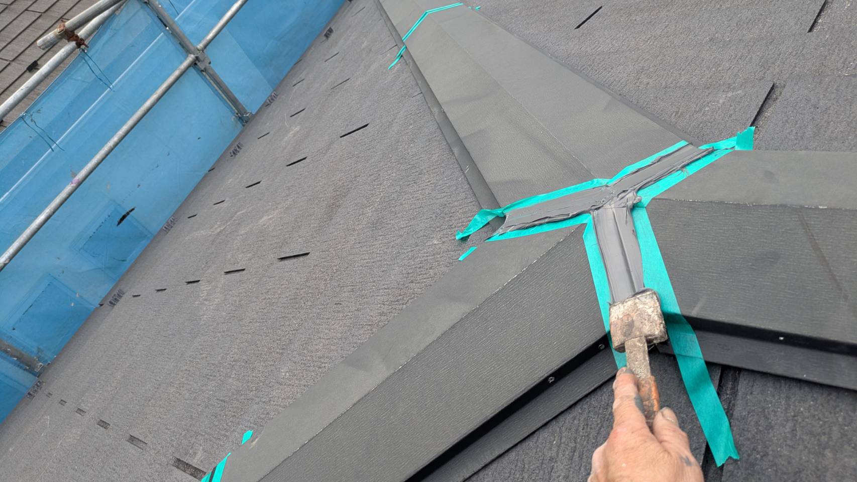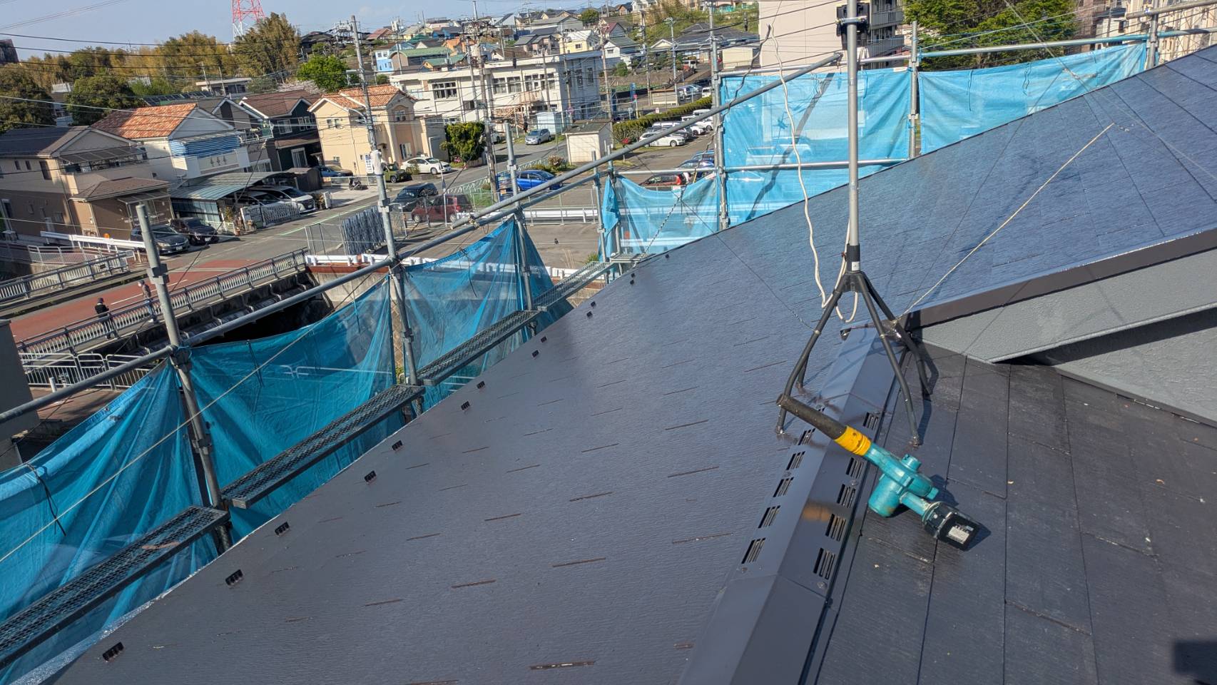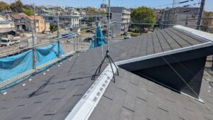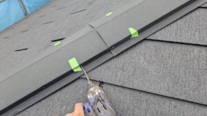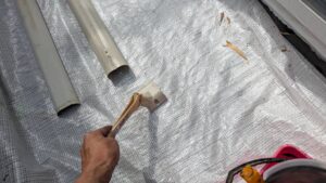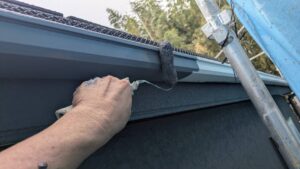 屋根の重なりを広げます。 屋根の雨水が排出しやすくするようにします。 タスペーサーは塗装工事では重要な作業部材の一つです。
