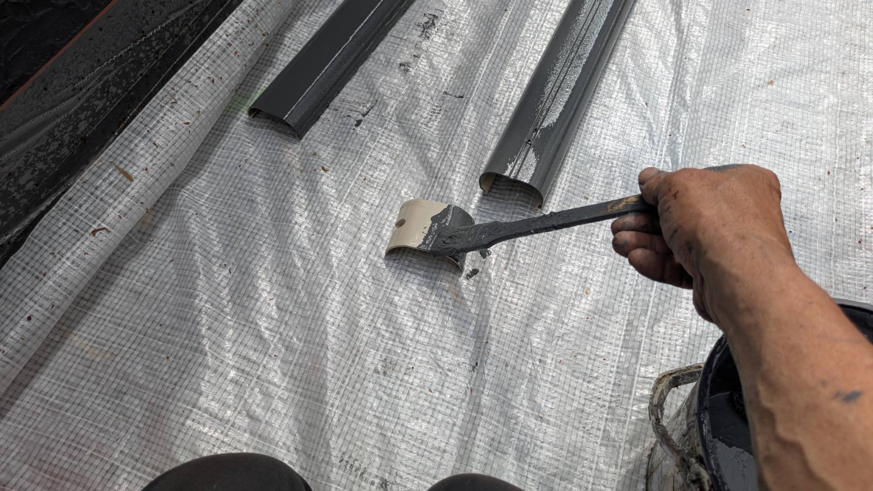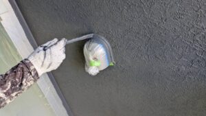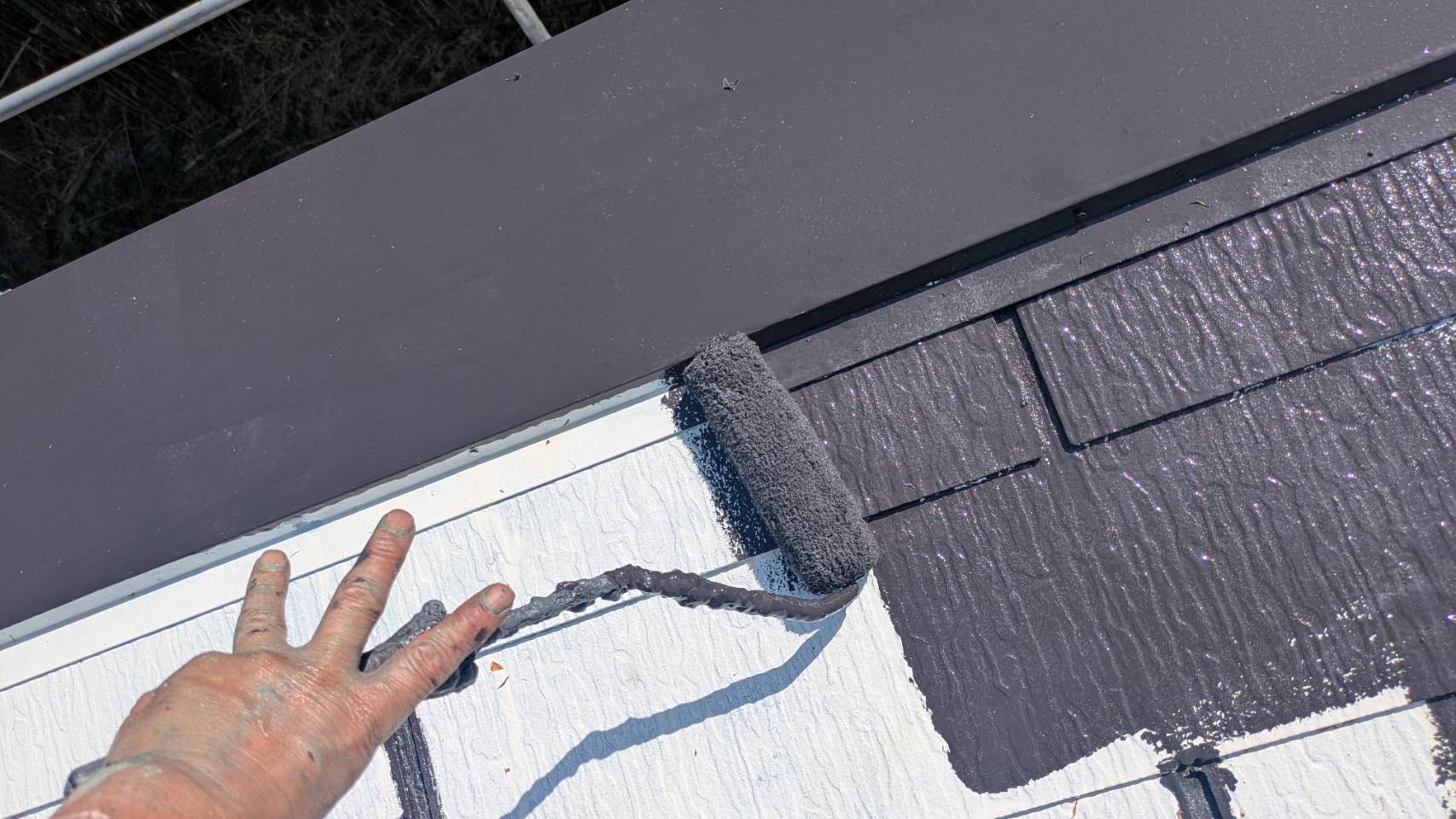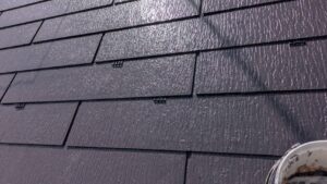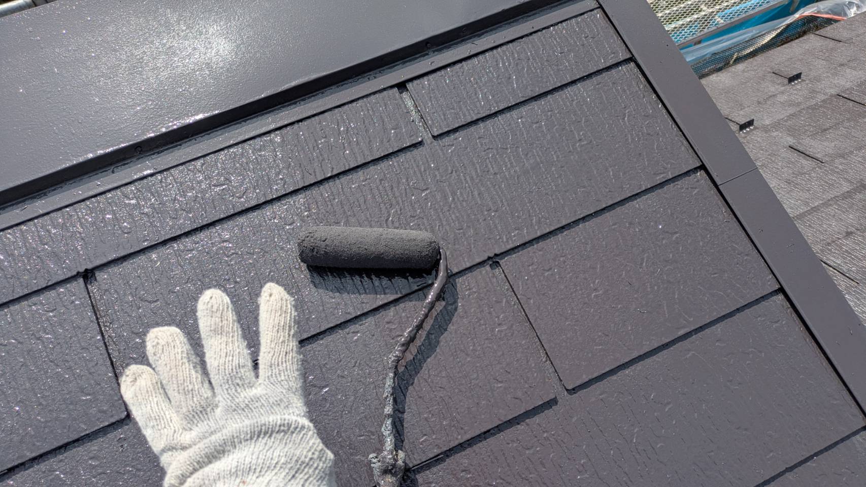 スレート屋根塗装 1回目 浸透タイプ 屋根材を強固にする特性があります。