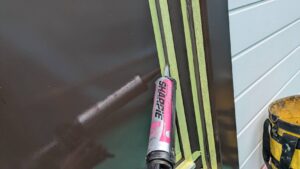 マスキングテープを貼って、プライマーを塗ります。