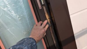 今日は木製サッシ塗装をすすめました。 木材は雨風を受けると、木材水分含水率というものが変わります。
