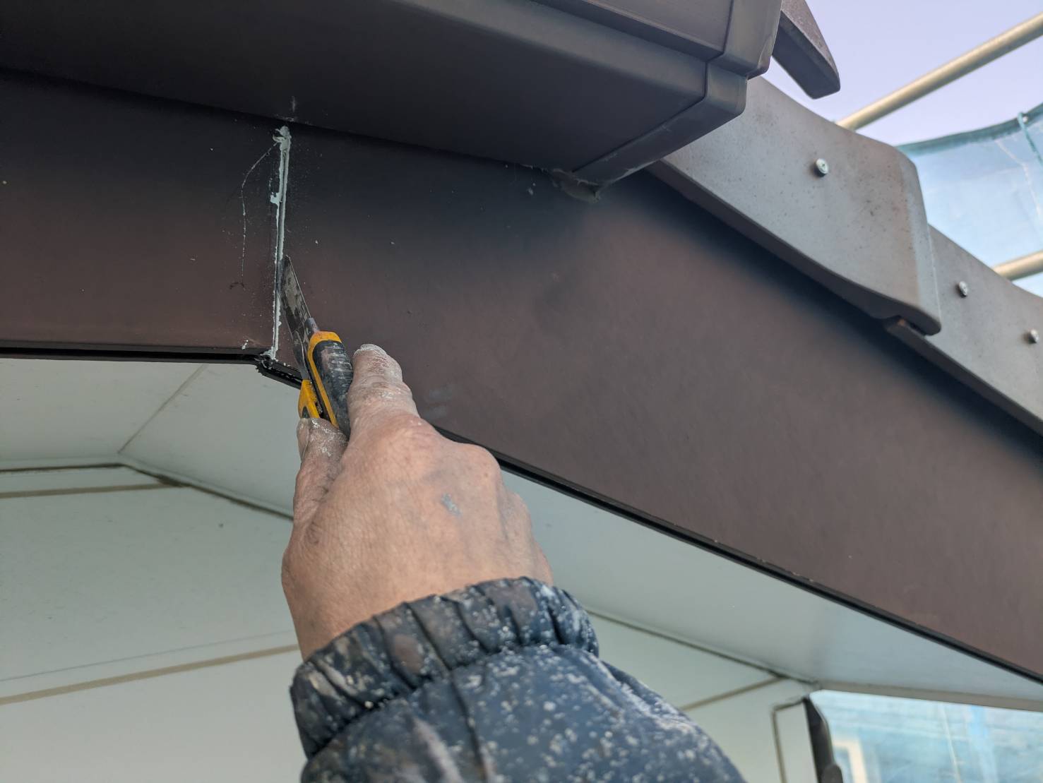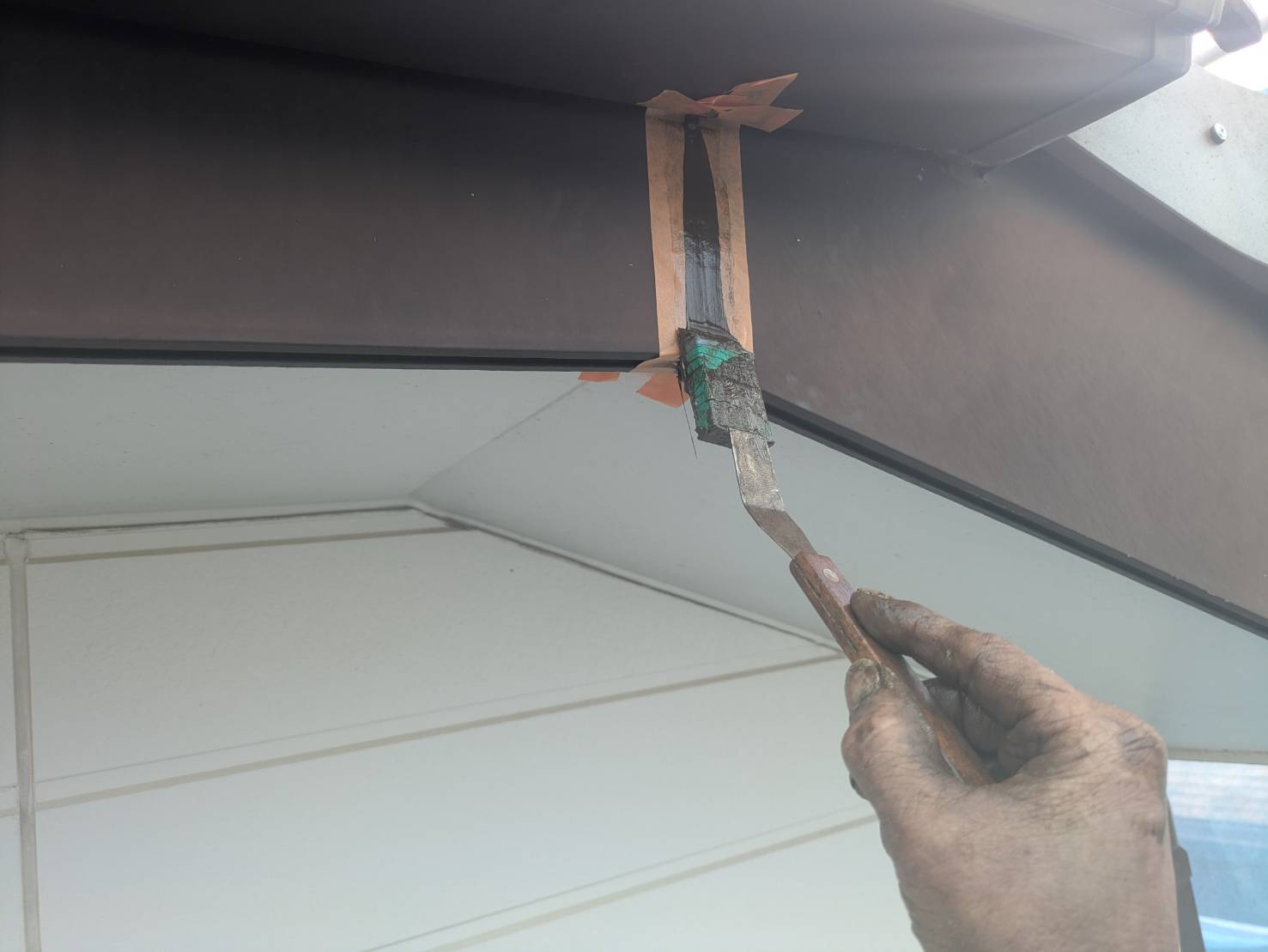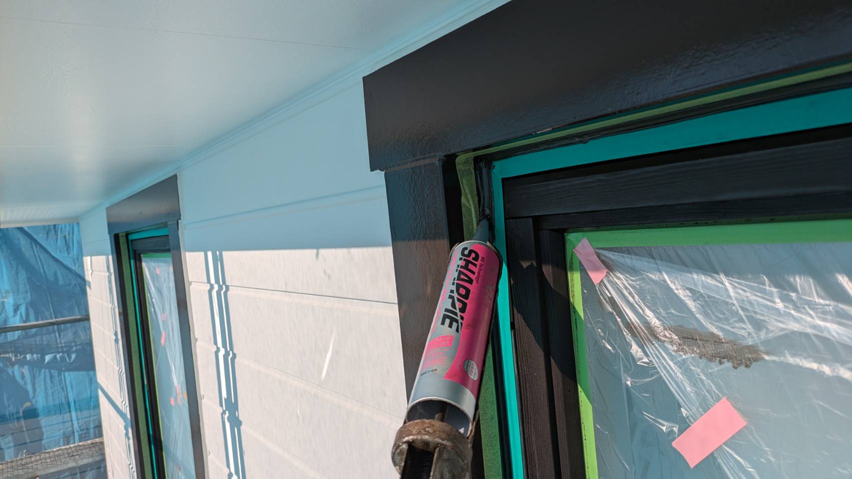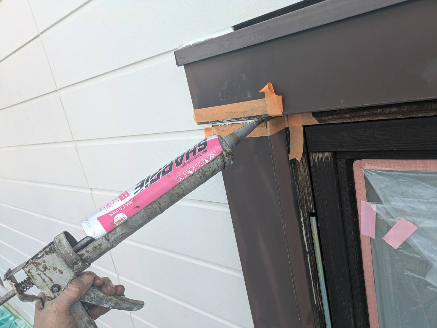 防水シール作業を進めました。 下地処理として重要な作業です。
