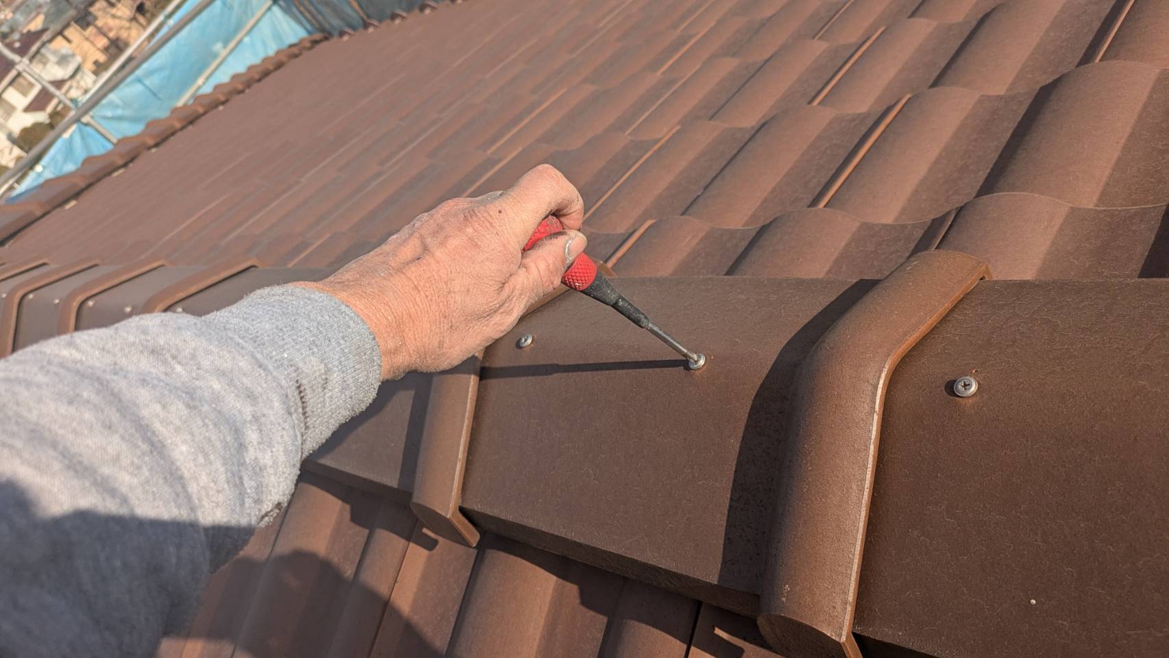 【屋根 棟ビス増し締め】