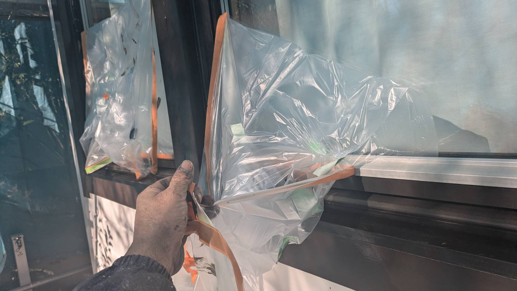 【窓ガラス養生撤去・清掃】