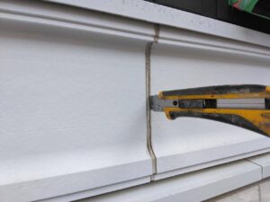 サイディング目地 仕上げ作業。防水シール材 注入。