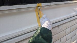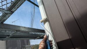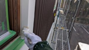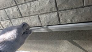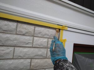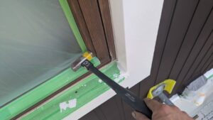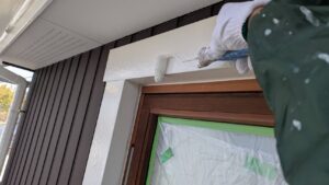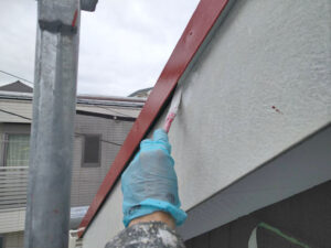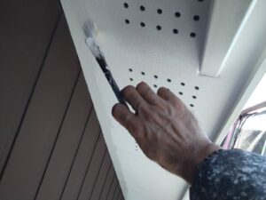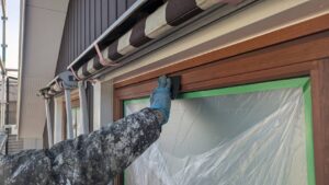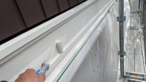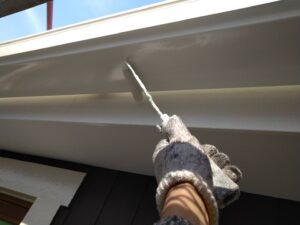 破風板塗装 狭いすき間はハケ塗り。 全体はローラー塗り(膜厚を均一に塗りやすいローラーを使用します)