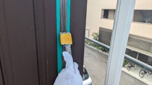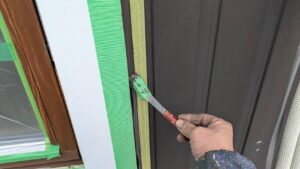 凹凸・段差部分の塗料が薄くなりやすいので、注意しながら施工します。  また狭いすき間はハケを奥まで入れて、目視確認をしながら進めます。