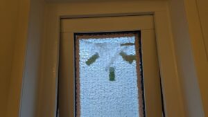 木製サッシ ガラス固定の縁  釘打ち直し(押さえ部材なので、経年で釘が浮き上がります)