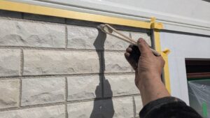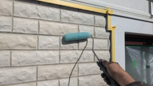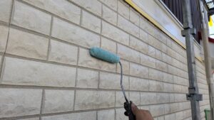 凹凸があるので、毛の長いタイプのローラーを使用しながら、目地奥まで塗り込みます。
