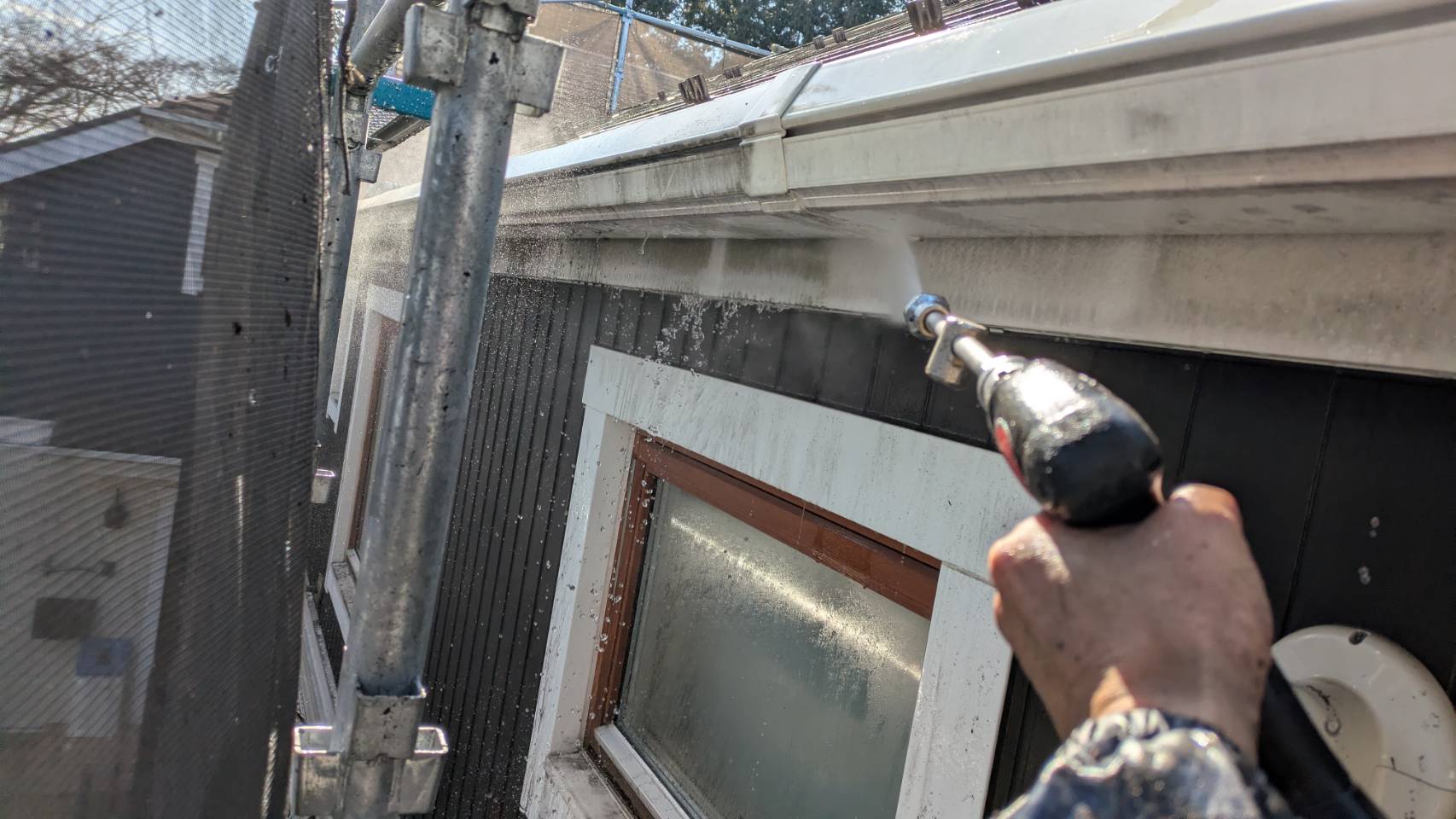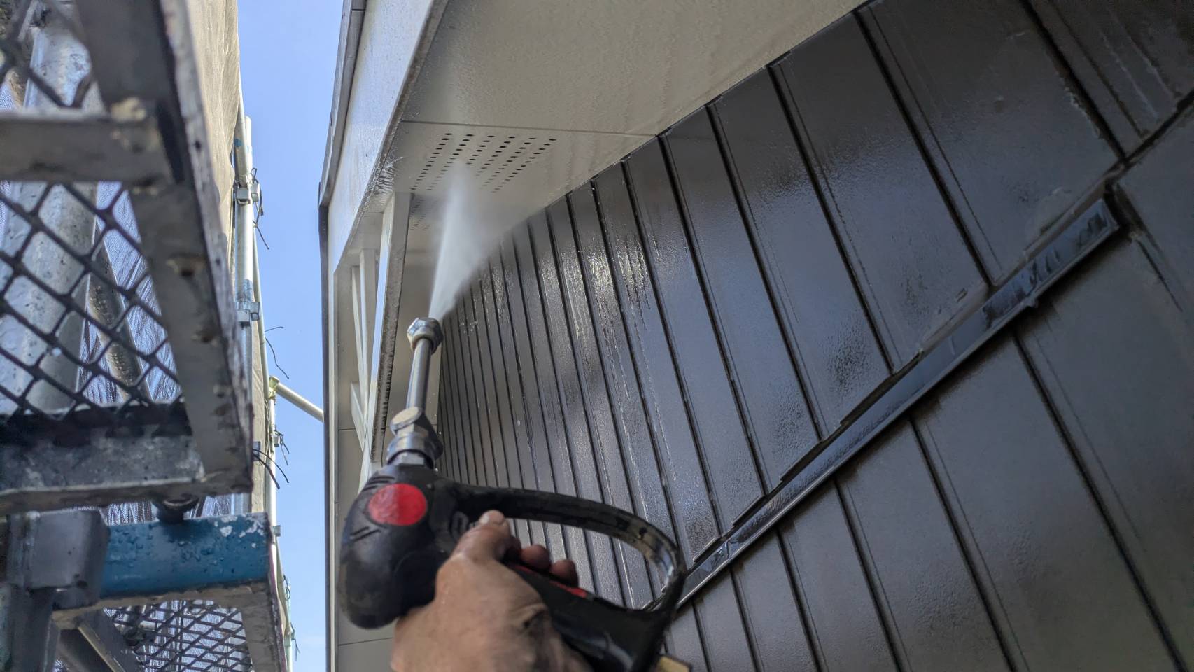 屋根 外壁 高圧洗浄から開始 2日目