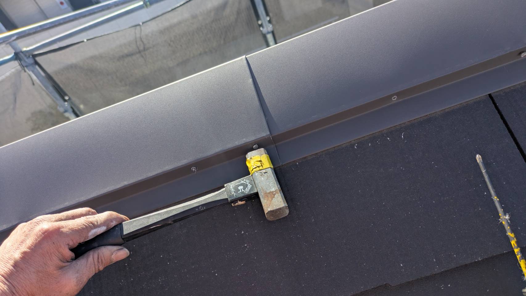 屋根の重なり目を広げます(毛細管現象対策)