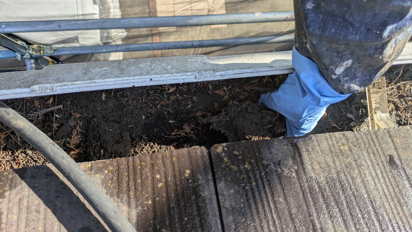 【雨トイの中 泥つまり清掃】