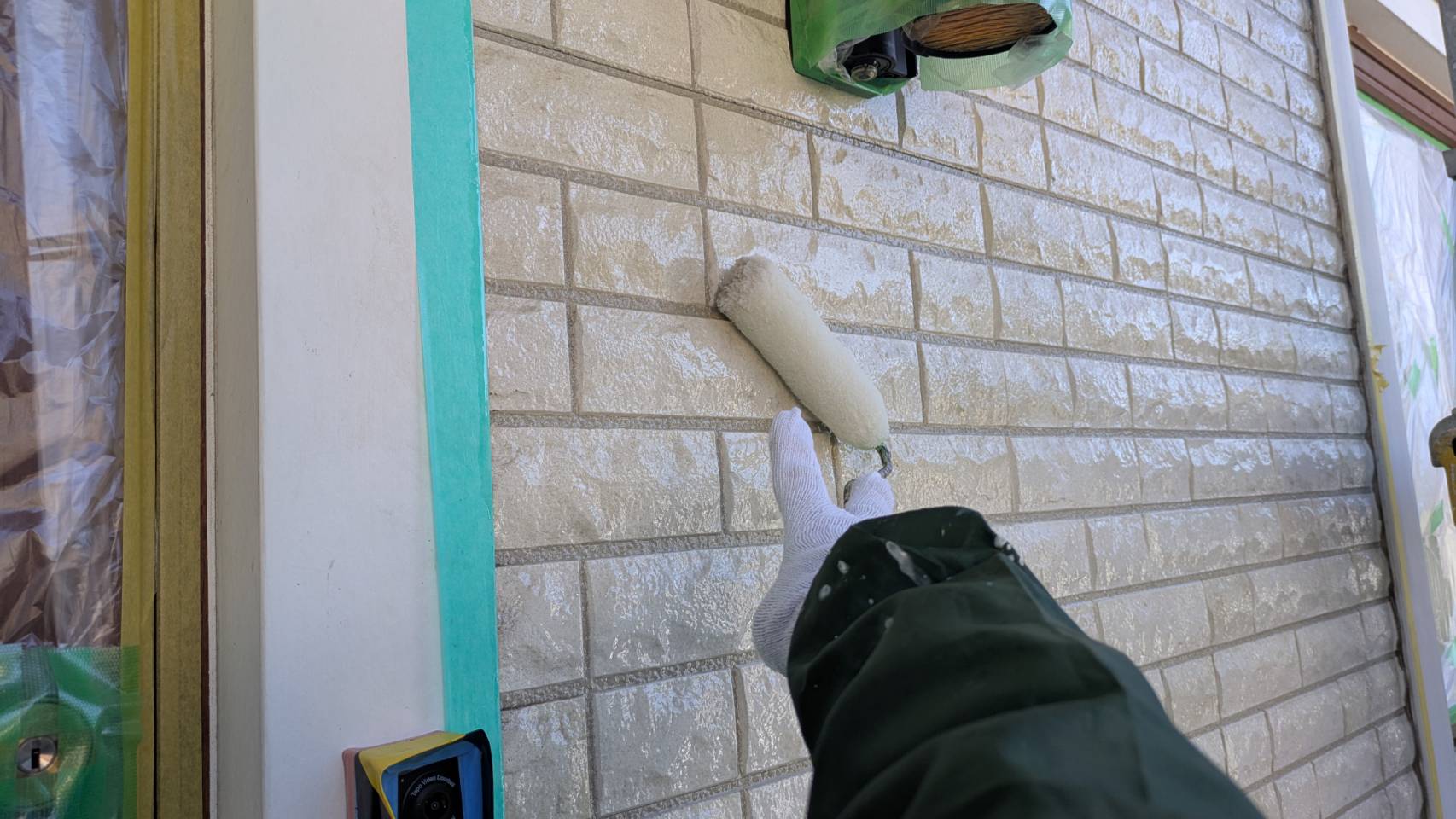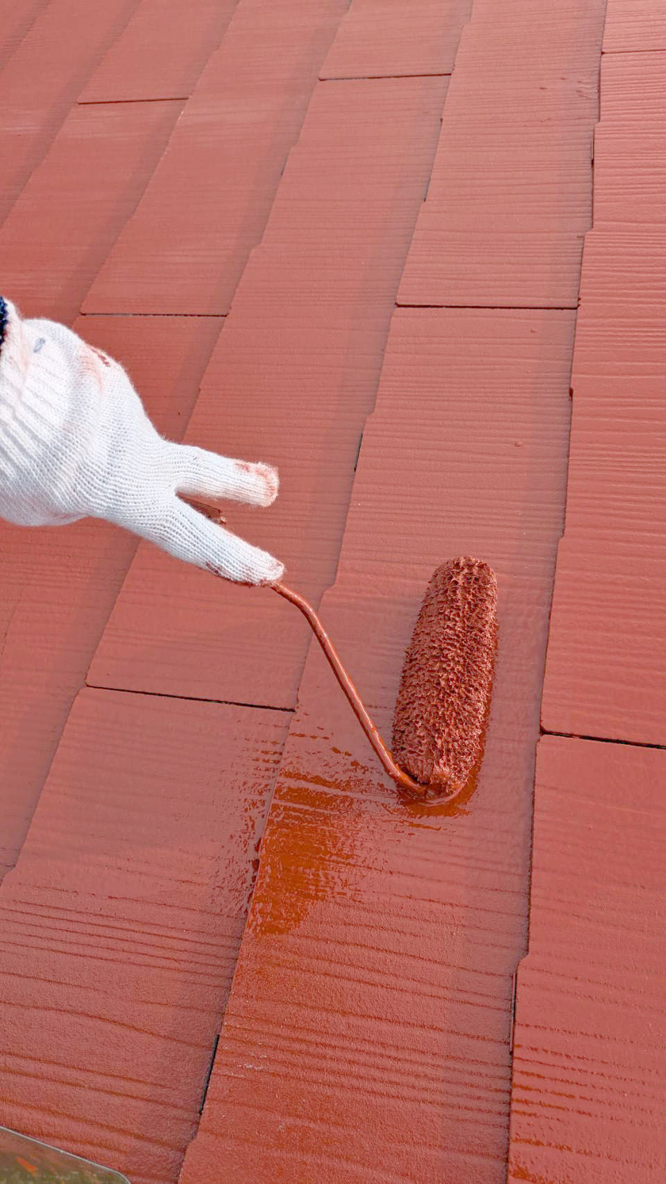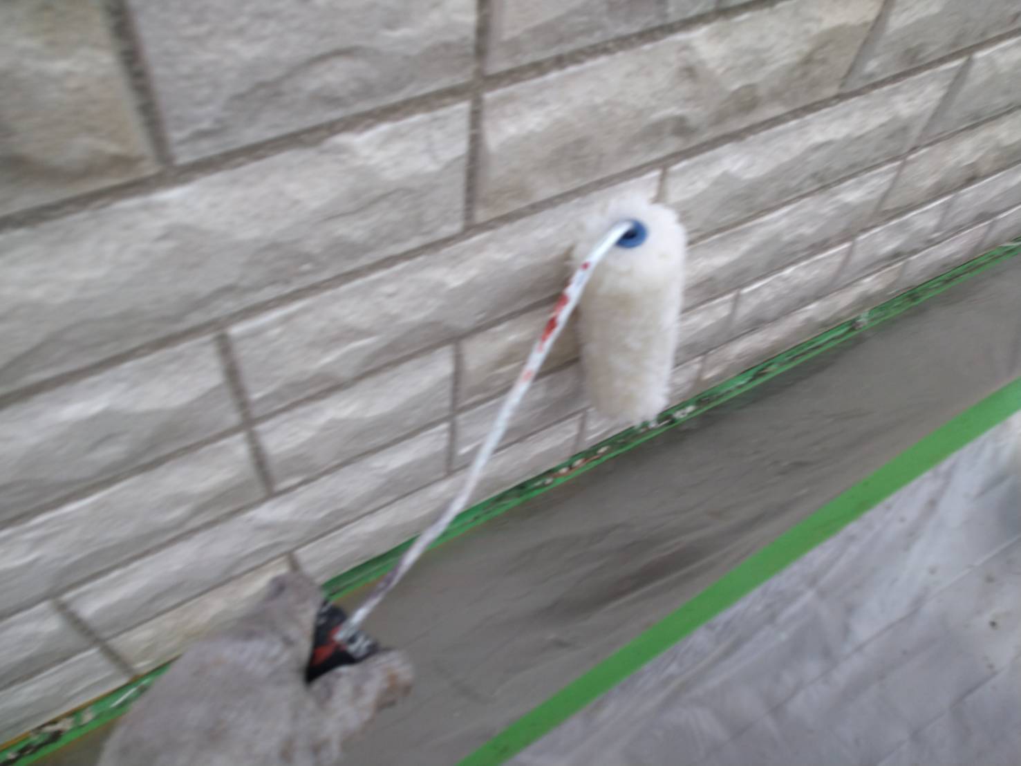 凹凸があるので、毛の長いタイプのローラーを使用しながら、目地奥まで塗り込みます。