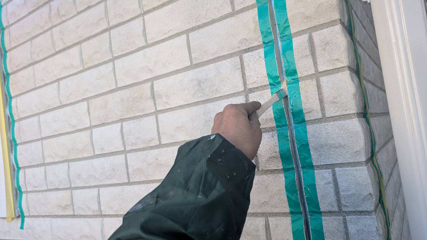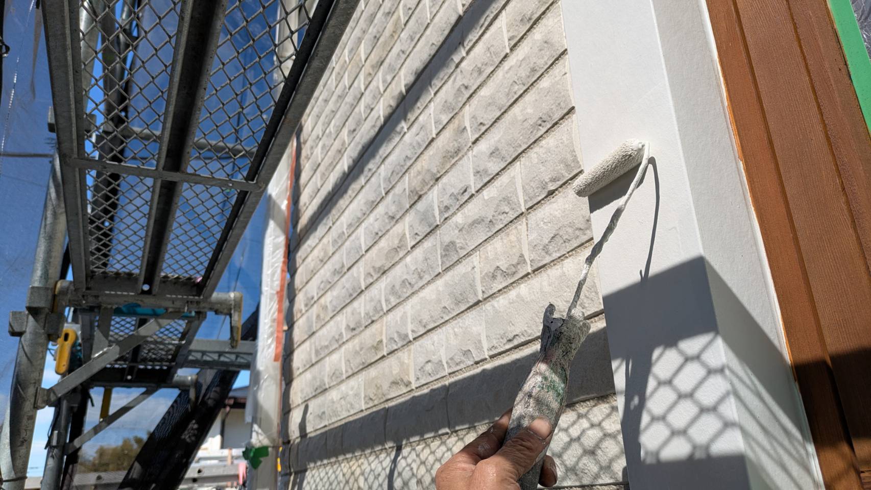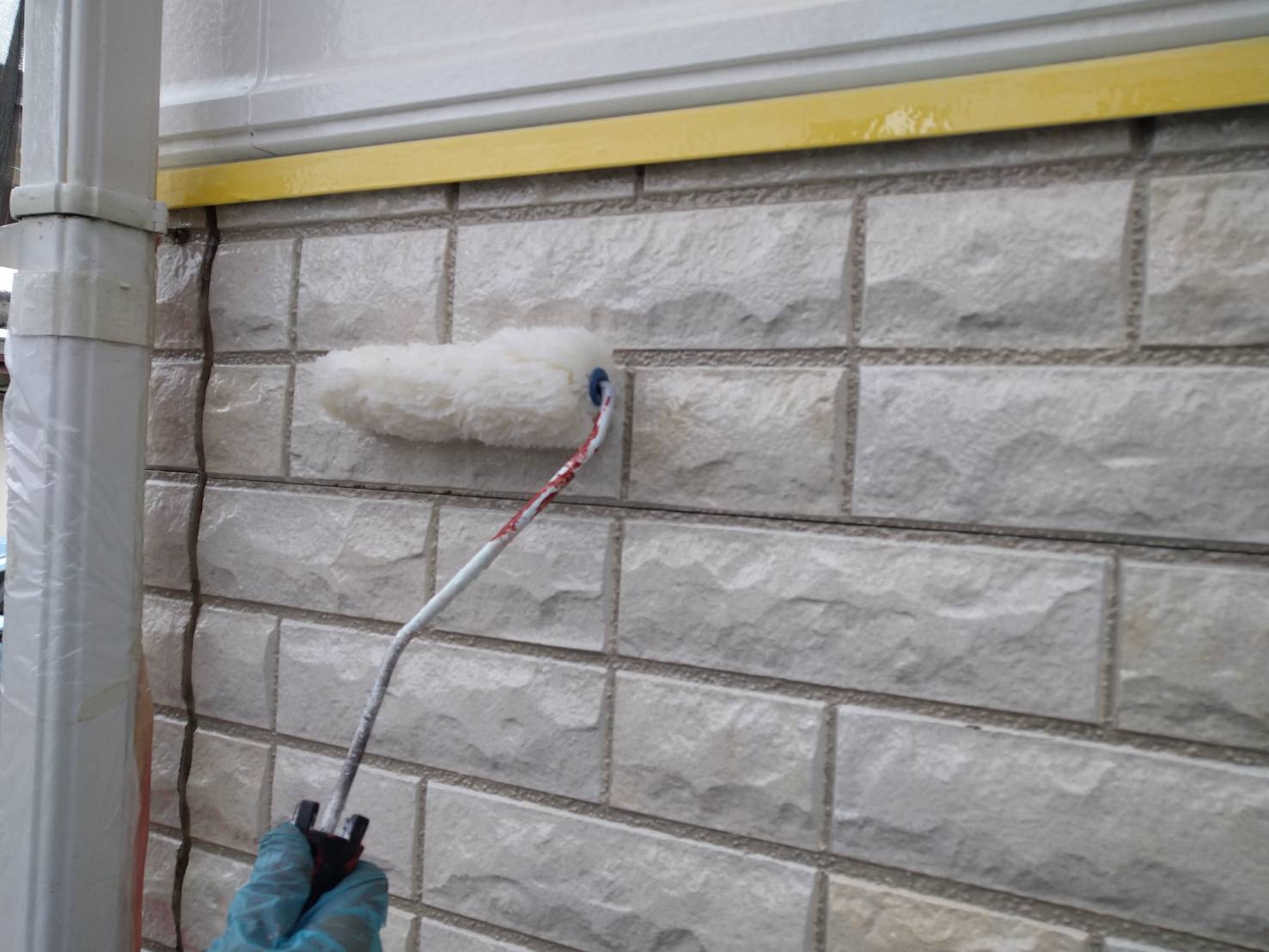 凹凸があるので、毛の長いタイプのローラーを使用しながら、目地奥まで塗り込みます。
