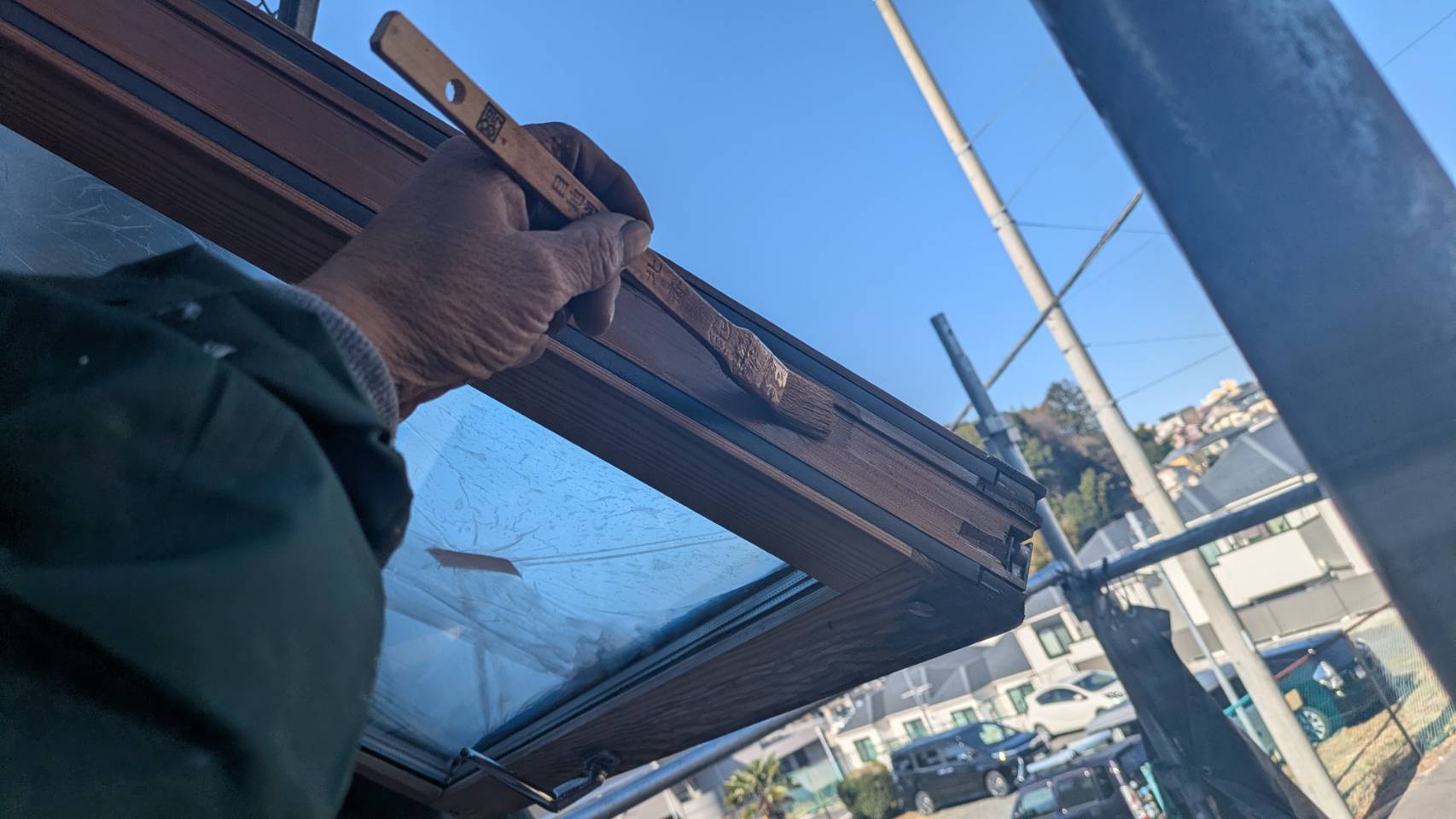 木製サッシの上塗り